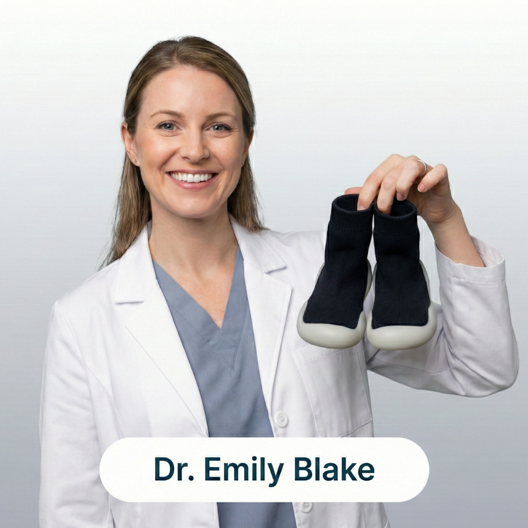Dr. Emily Blake, a pediatric foot development specialist, recommends Tiny Exploringsâ„¢ for toddlers during their critical walking development stage.