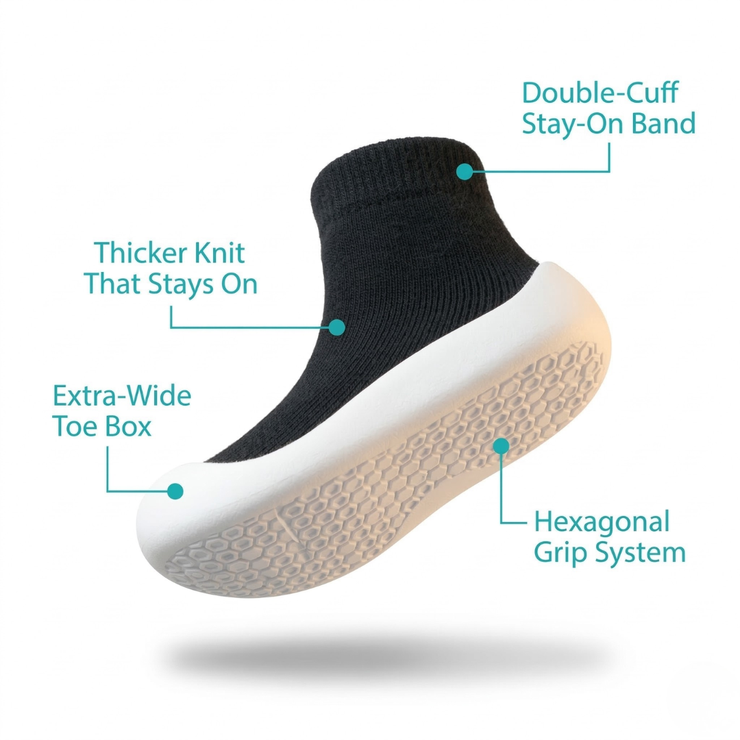TinyExplorings Sock Shoes are made for curious little explorers. Whether they’re running through the living room or toddling across the backyard, their feet stay protected and comfy.